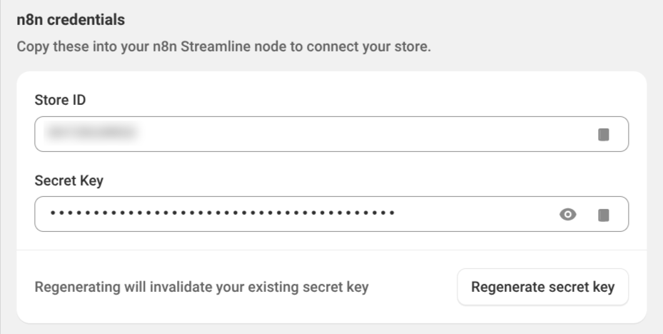 Paste the credentials into the Streamline Connector node in n8n.